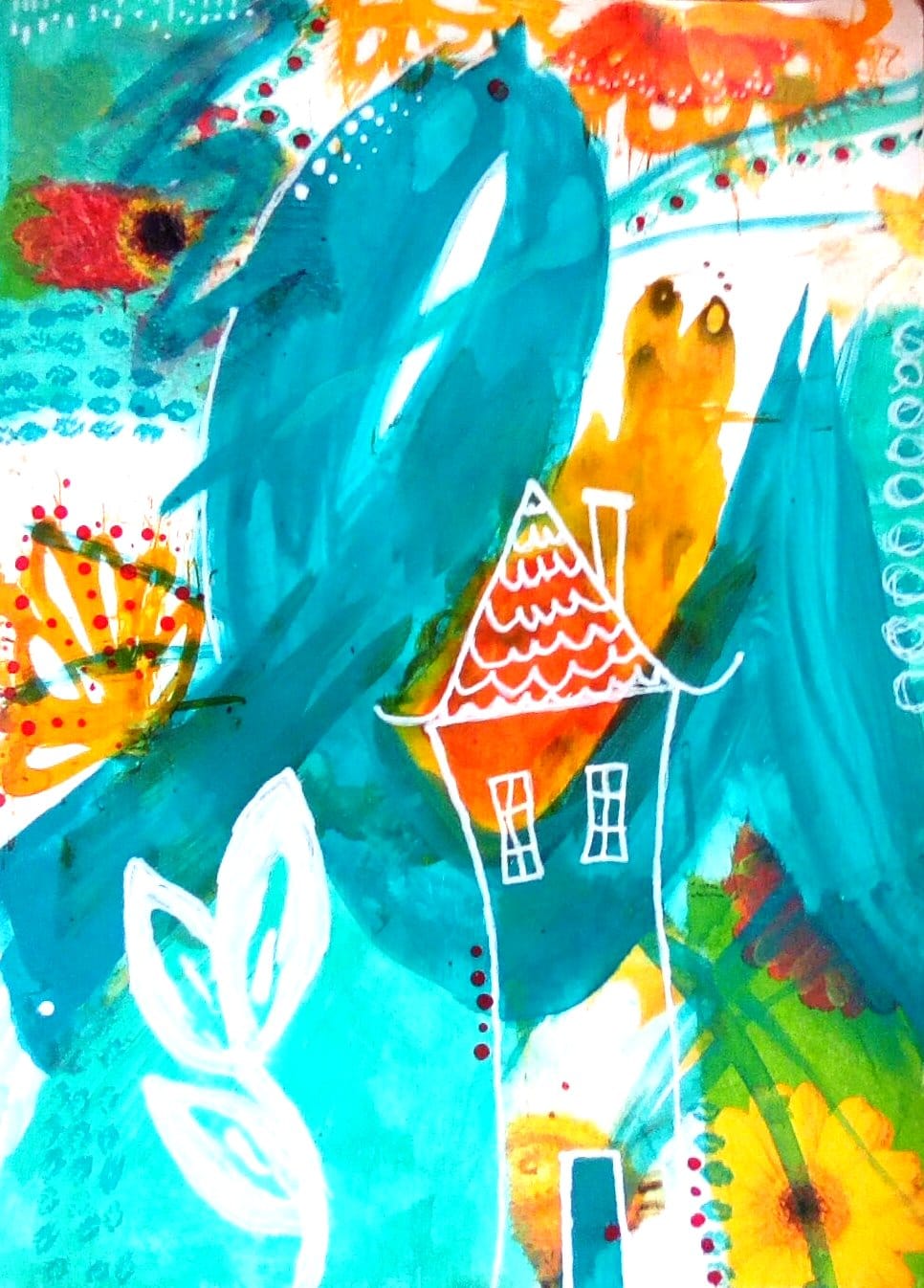 Quel thème que la maison, le village. La récolte artistique est généreuse et la fantaisie des créations me ravie. Félicitations, on devrait faire un petit recueil de cette collection. Félicitations !